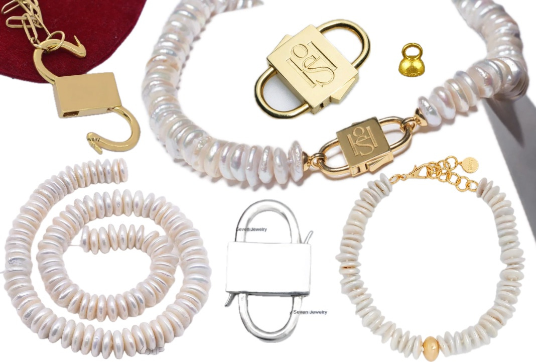 If that’s out of budget, Etsy offers affordable DIY supplies — I found these padlocks, for example, as well as several sources for rondelle pearl strands. NEST also makes a necklace in a similar style at a more affordable price point. And don’t forget to finish with an elegant end cap!