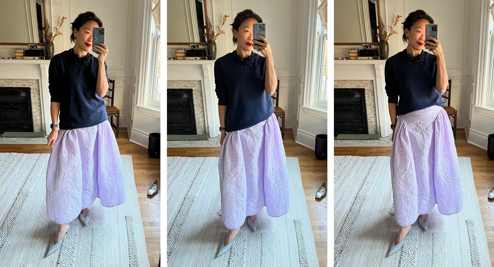 3) Finally, the “special factor.” Is there something about this outfit that feels special, even in a small way? Sometimes the answer’s no, and that’s fine. On most days, I care more about proportion and balance than about adding third, fourth, or fifth pieces (granted, with thoughtfully chosen foundational pieces). See: drop-off outfits above.