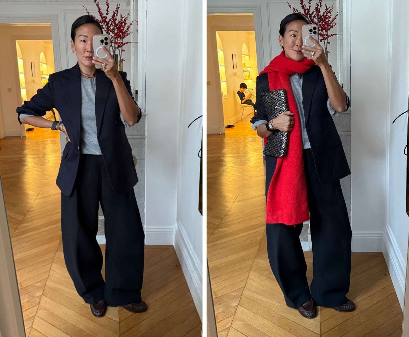 And to be clear, there’s nothing wrong with “minimal effort” outfits, btw! They have their place in my life. But, there are also so many little tweaks that can take an outfit from good (left) to great (right):